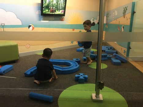 こっちの充実したタブレットやおもちゃがついている子供遊びスペースには脱帽。
